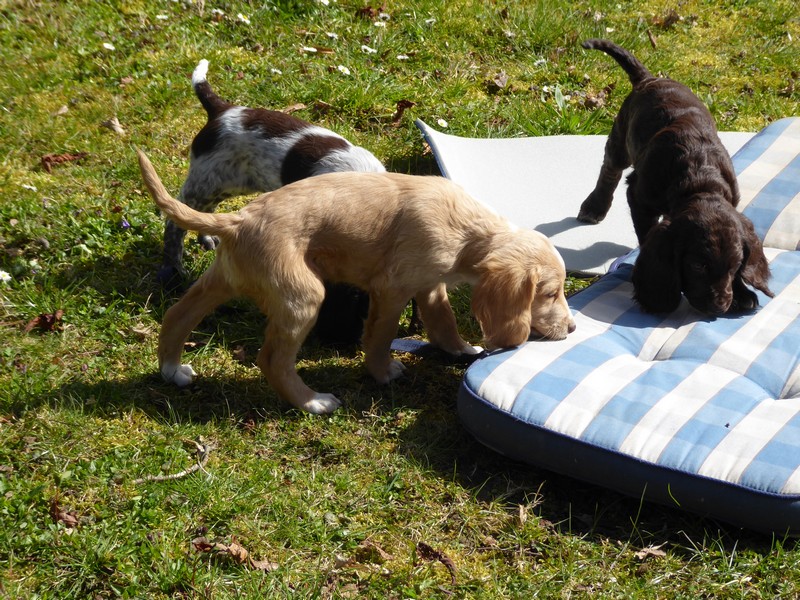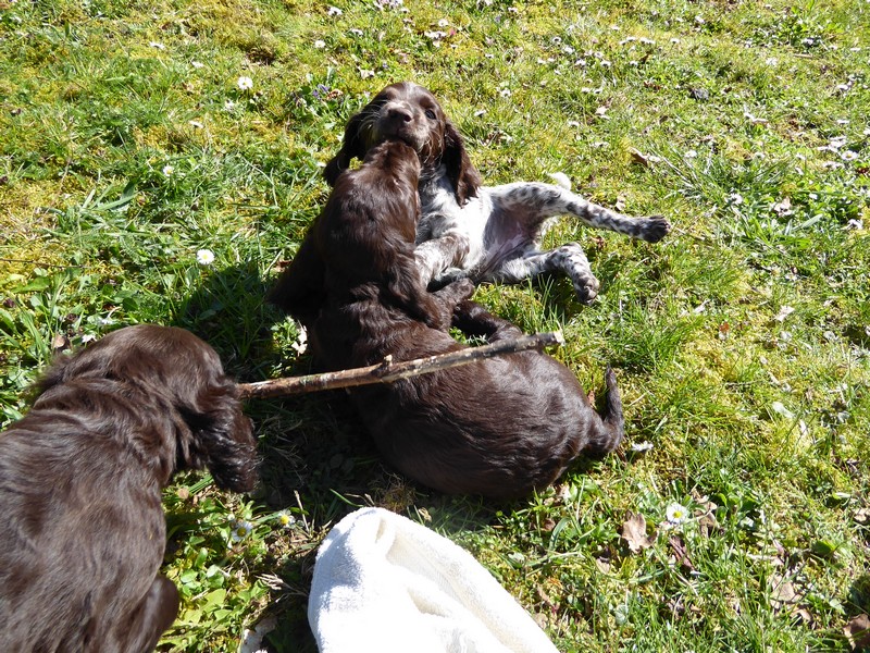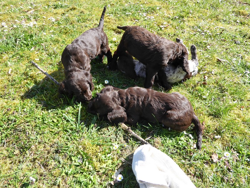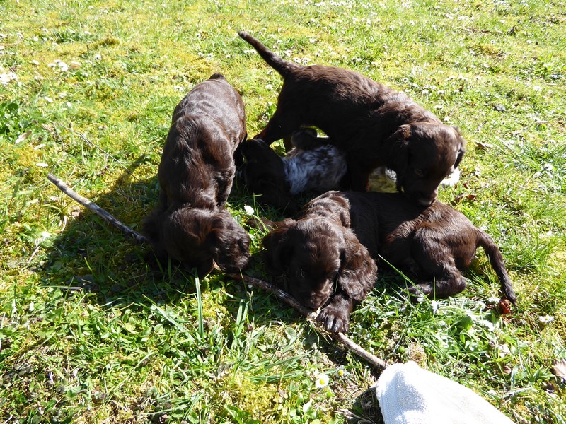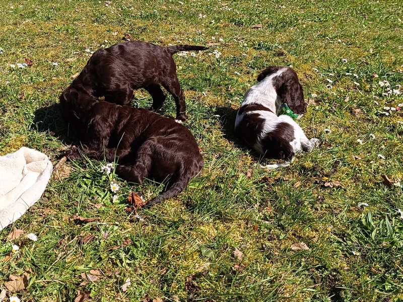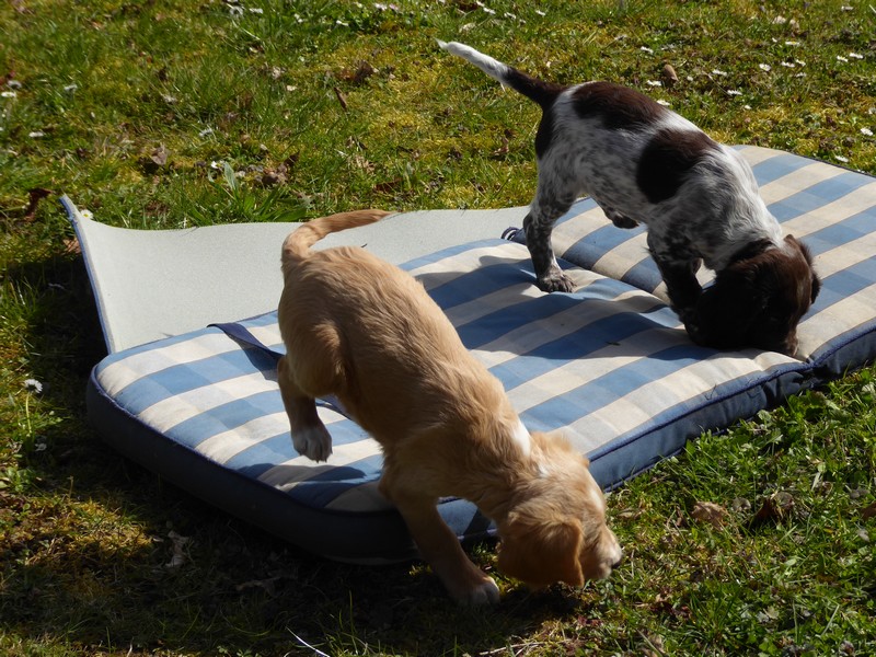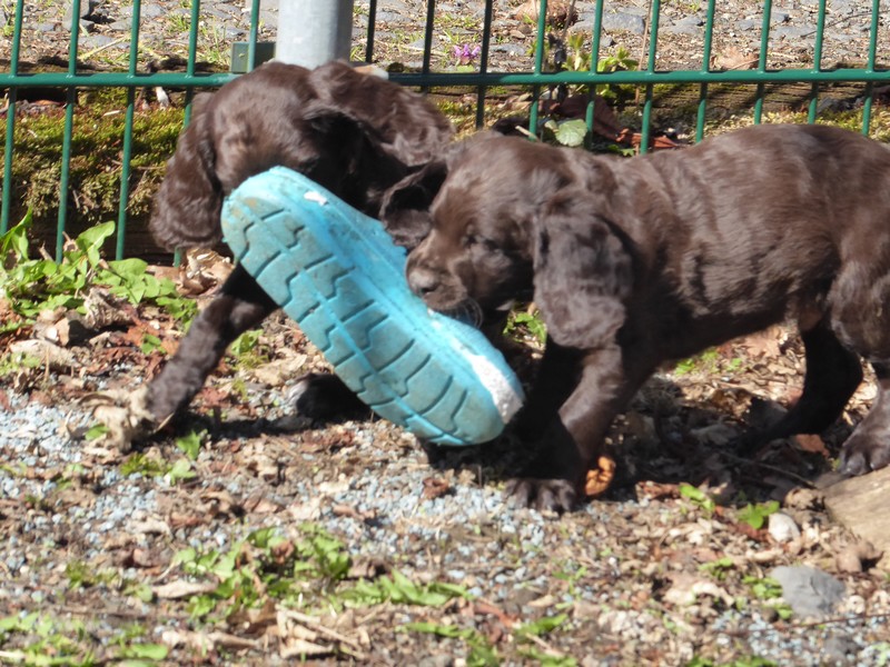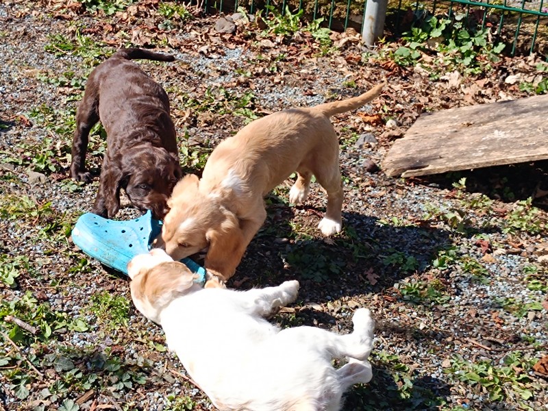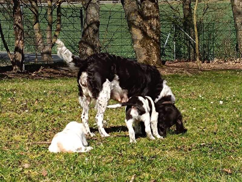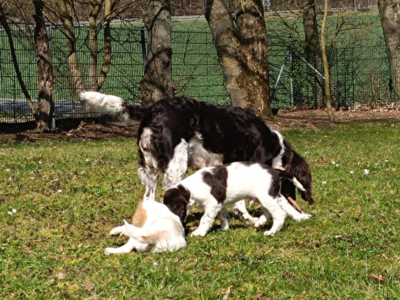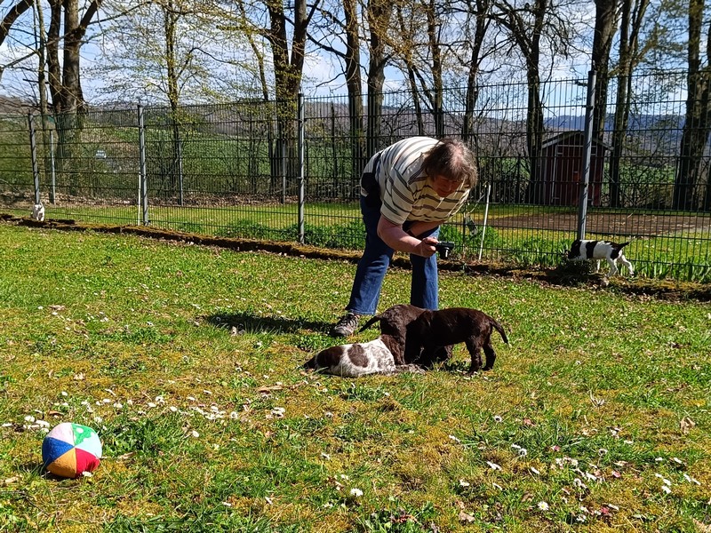 Foto Shooting Hopfenhof Allgemein 2. April 2026 5. April 2026 Die Welpen haben Besuch von einer lieben Hundefreundin, die viele Fotos gemacht hat. Begrüssungs Komitee Ballspiel mit Ayka Stöckchenspiel und immer in Bewegung aber irgendwann werden sie müde