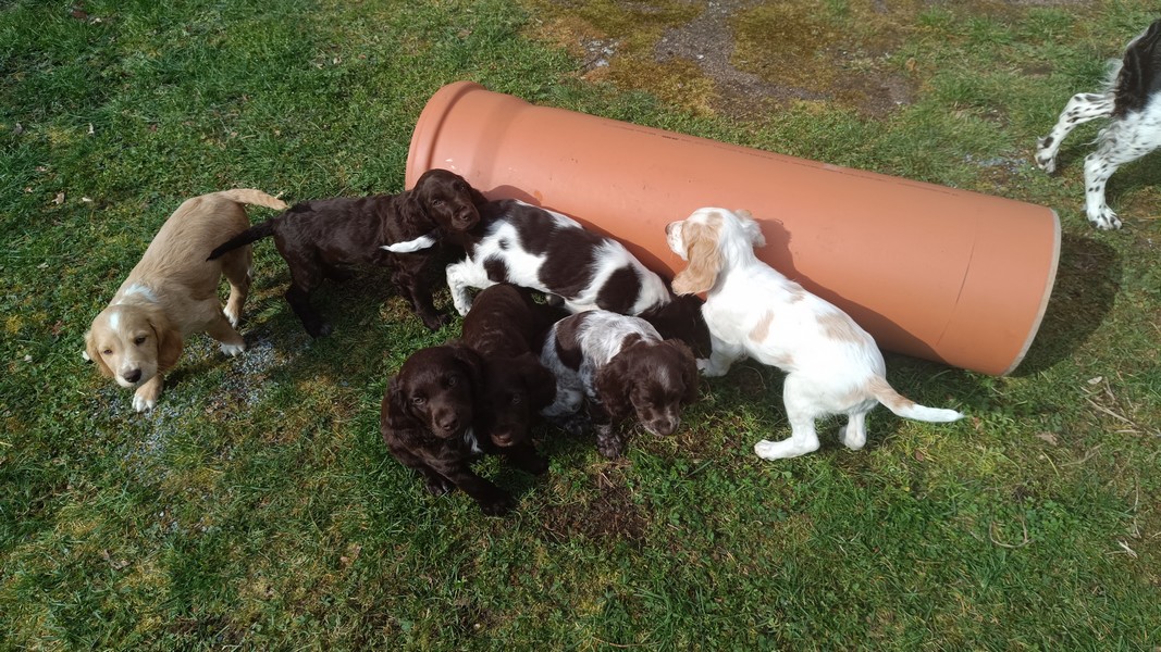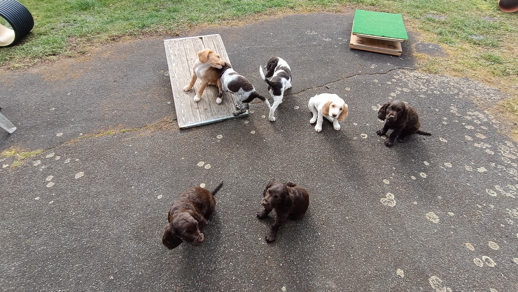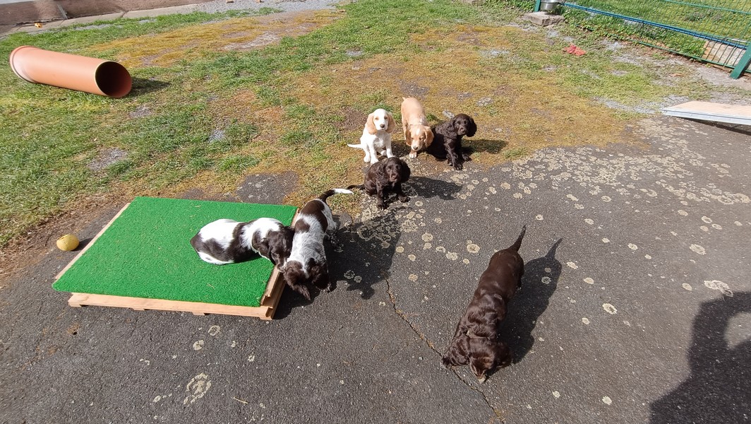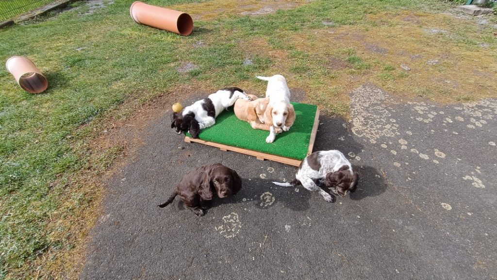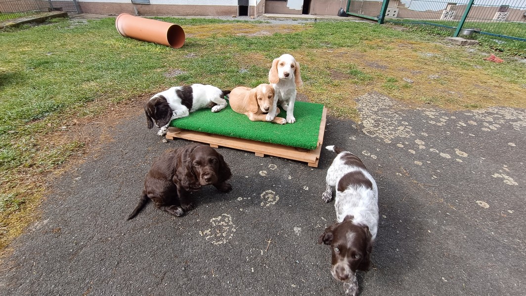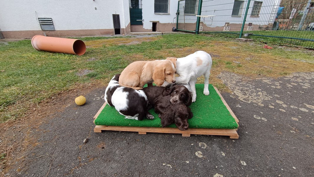 Das Gitter am Eingang mussten wir schon gegen ein höheres wechseln, die ersten Welpen sassen schon vor dem Terrassenfenster.