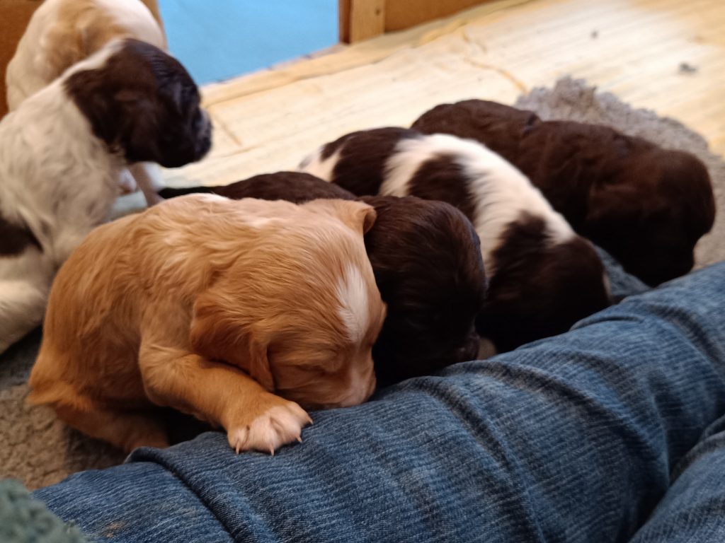 Die Kleinen verlassen jetzt regelmässig die Wurfkiste, um sich zu lösen – da müssen wir nicht mehr so oft die Bettwäsche wechseln.