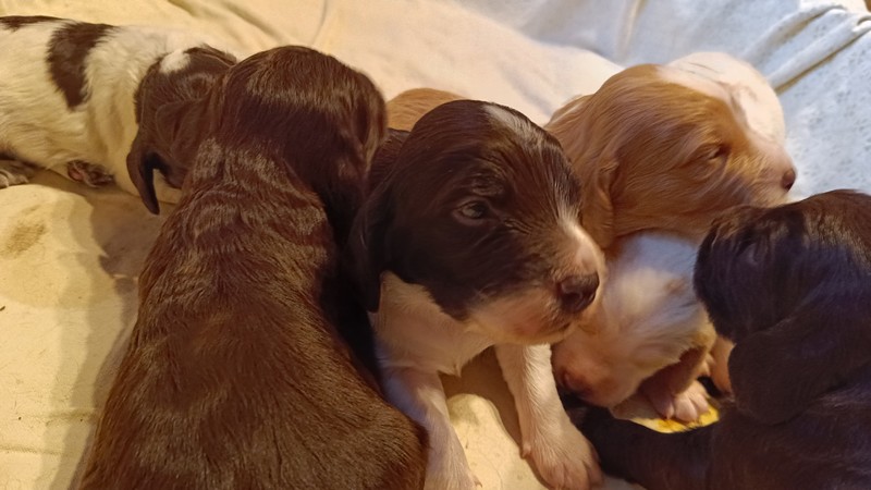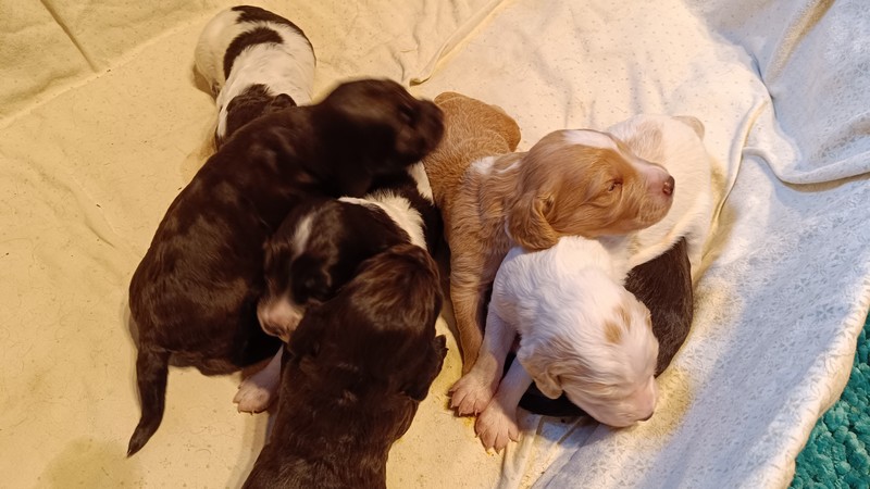zwei Wochen alt Hopfenhof Allgemein 24. Februar 2026 24. Februar 2026 Inzwischen haben alle Welpen die Augen geöffnet, das Hören entwickelt sich und sie reagieren zunehmend auf Umweltreize. Aus dem Kriechen wird langsam ein Laufen, auch wenn sie dabei manchmal noch umfallen.